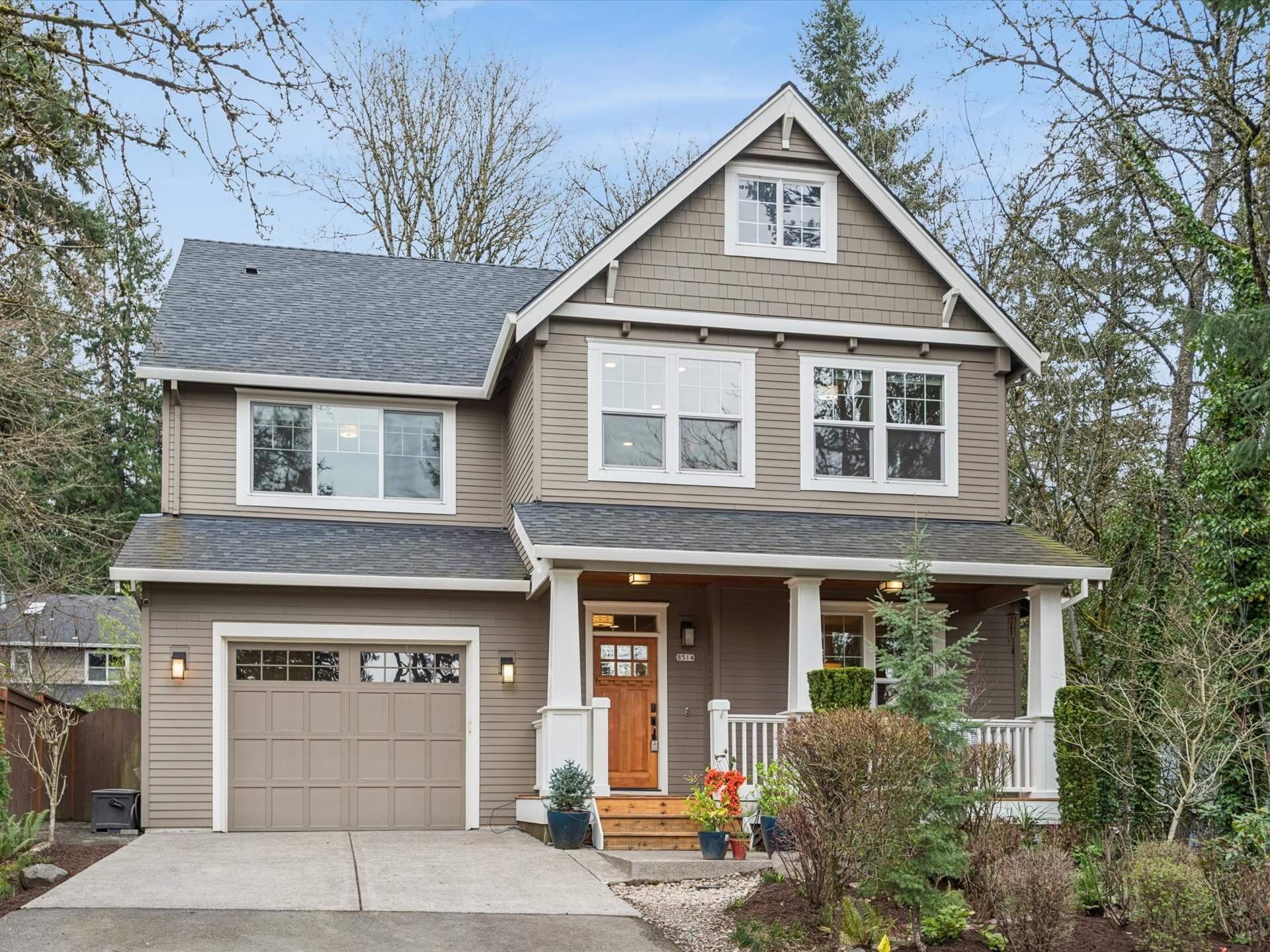 Modern Craftsman vibes, built in 2016 by Everett Custom Homes. This 4 bed, 3 bath stunner nails the balance of style and function with an ideal layout—three bedrooms up, a spacious bonus/media hangout, and upstairs laundry right where you want it. Rich wood floors run throughout the main level, leading to a chef-worthy kitchen with oversized island, granite counters, stainless appliances, and a butler’s pantry—flowing effortlessly into a light-filled family room with custom built-ins and gas FP. Slide outside to a curated backyard designed for easy entertaining, with patio dining and room to gather around a fire pit. Elevated details like box beam ceilings, a welcoming formal entry, and 9’ ceilings on both levels give the home an airy, polished feel. The primary suite delivers with a soaking tub, walk-in shower, and a seriously generous closet. Tucked on a quiet street just moments from Multnomah Village—grab coffee, dinner, or browse local shops just blocks from your front door.